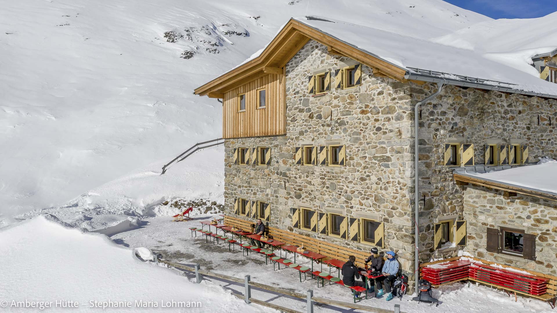Wir nutzen die Amberger Hütte gerne für unsere leichten Skihochtouren. Die Amberger Hütte ist eine urige, aber komfortable Bergsteigerunterkunft. Für Skitourengeher ein besonderes Schmankerl ist die "Fußbodenheizung" der Hütte. Eine der zahlreichen Warmwasserquellen des Ötztales entspringt direkt unter der Hütte. Die Abwärme wird einfach durch das Fundament geleitet. Kalte Füße sind praktisch ausgeschlossen. Die zwei Ur-Ötztaler Lydia und Serafin Gstrein bewirten seit Jahren die Unterkunft liebevoll und tischen beste alpine Küche auf. Die Kässpatzen sind ein Gedicht, und wer sich danach noch bewegen kann, bringt seine Ski in der hütteneigenen Skiwerkstatt für den nächsten Tourentag auf Vordermann.