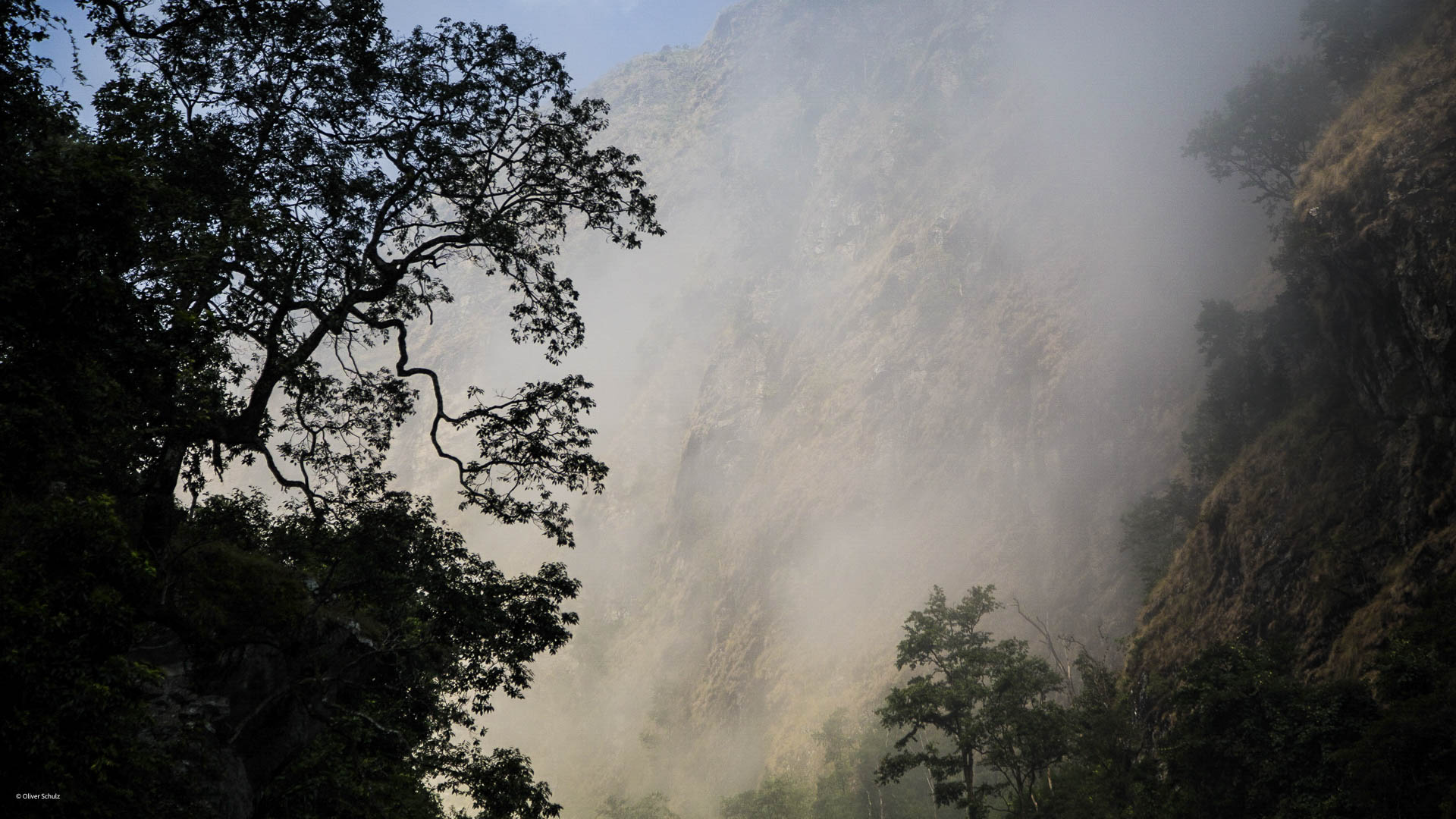 Wir steigen weiter ab und erreichen die subtropische Waldgrenze. Die vielen Vogelarten und auch die lustigen Languren begleiten uns wieder durch die üppiger werdende Pflanzenwelt. Noch immer schweift unser Blick hin und wieder zurück auf die nun hinter uns liegenden mächtigen Wände des Manaslu. In Goa legen wir unsere Mittagpause ein und steigen anschließend weiter durch das von Gurung bewohnte Dorf Tilje ab. Wir gelangen auf den sehr beliebten Annapurna Trail, dem wir flussabwärts folgen, bis wir Dharapani erreichen – das Ziel unseres Himalaya Trekkings rund um den Manaslu. Übernachtung in Dharapani.