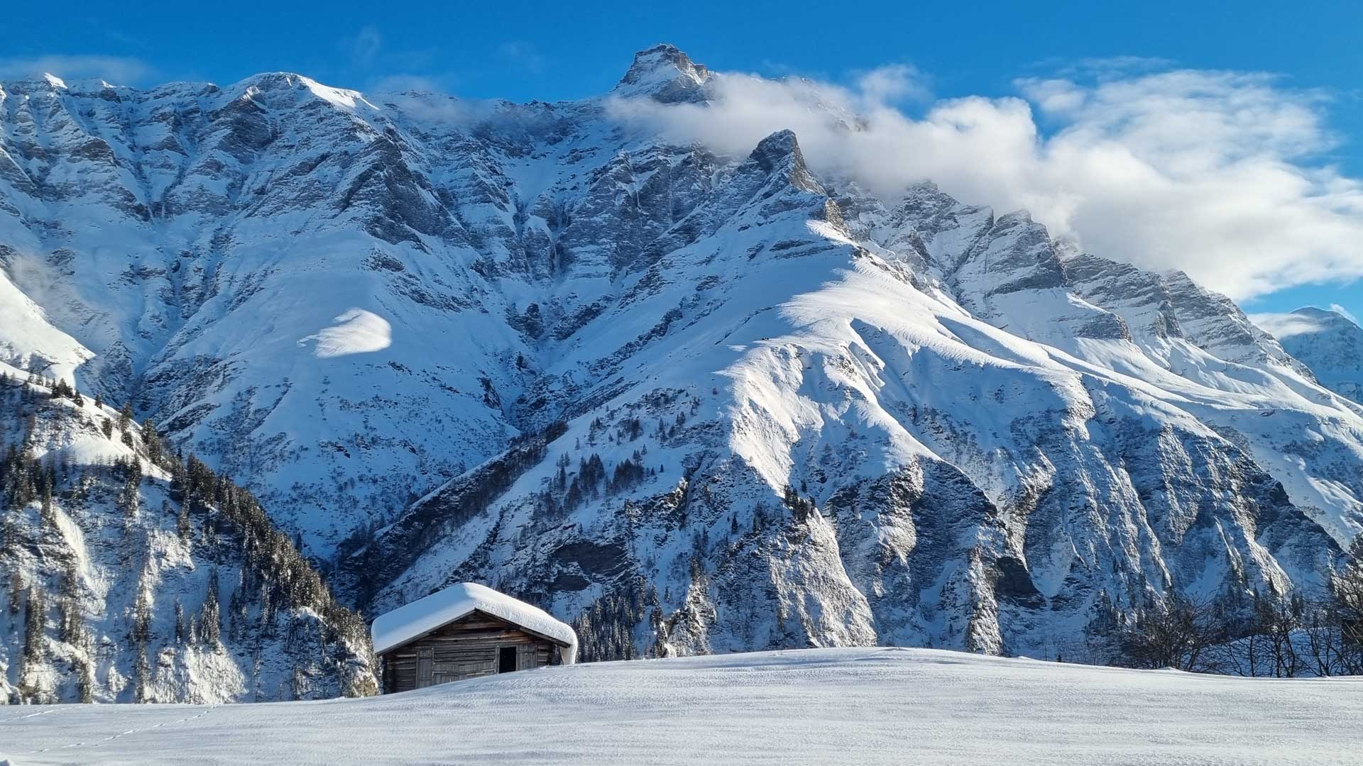 Willkommen im Safiental! Nach dem Bezug der Zimmer am Vormittag brechen wir zu unserer ersten Skitour auf den Chamaner Grat auf. Schon der Aufstieg direkt vom Hotel führt uns über sanft ansteigende Hänge und eine abwechslungsreiche Hügellandschaft, bis wir nach rund 800 Höhenmetern einen der aussichtsreichen Gipfelpunkte erreichen. Von hier eröffnet sich ein eindrucksvoller Blick über das Tal und die umliegenden Berge – ein erster Vorgeschmack auf die Vielfalt an Tourenmöglichkeiten, die uns in den kommenden Tagen erwarten.