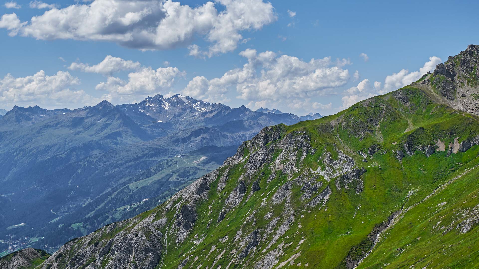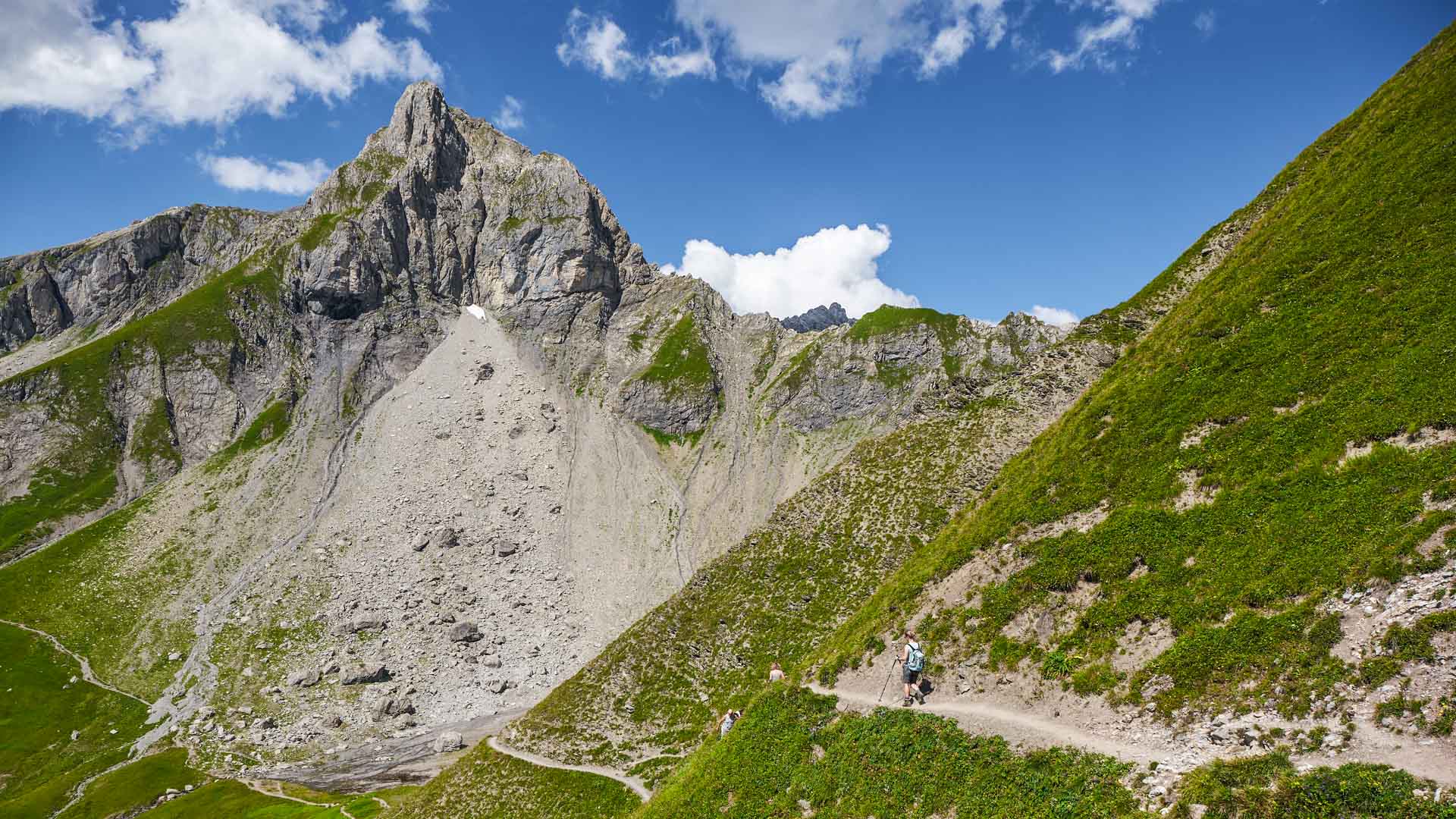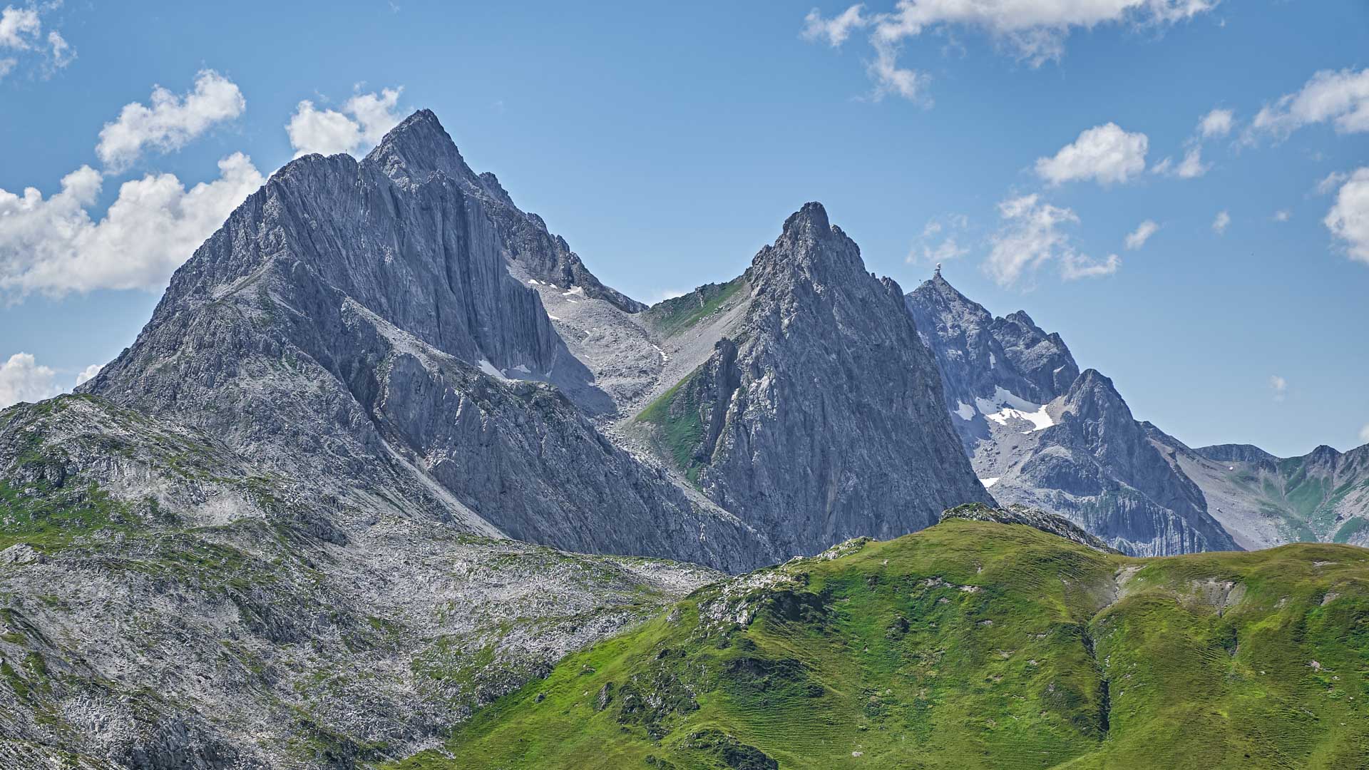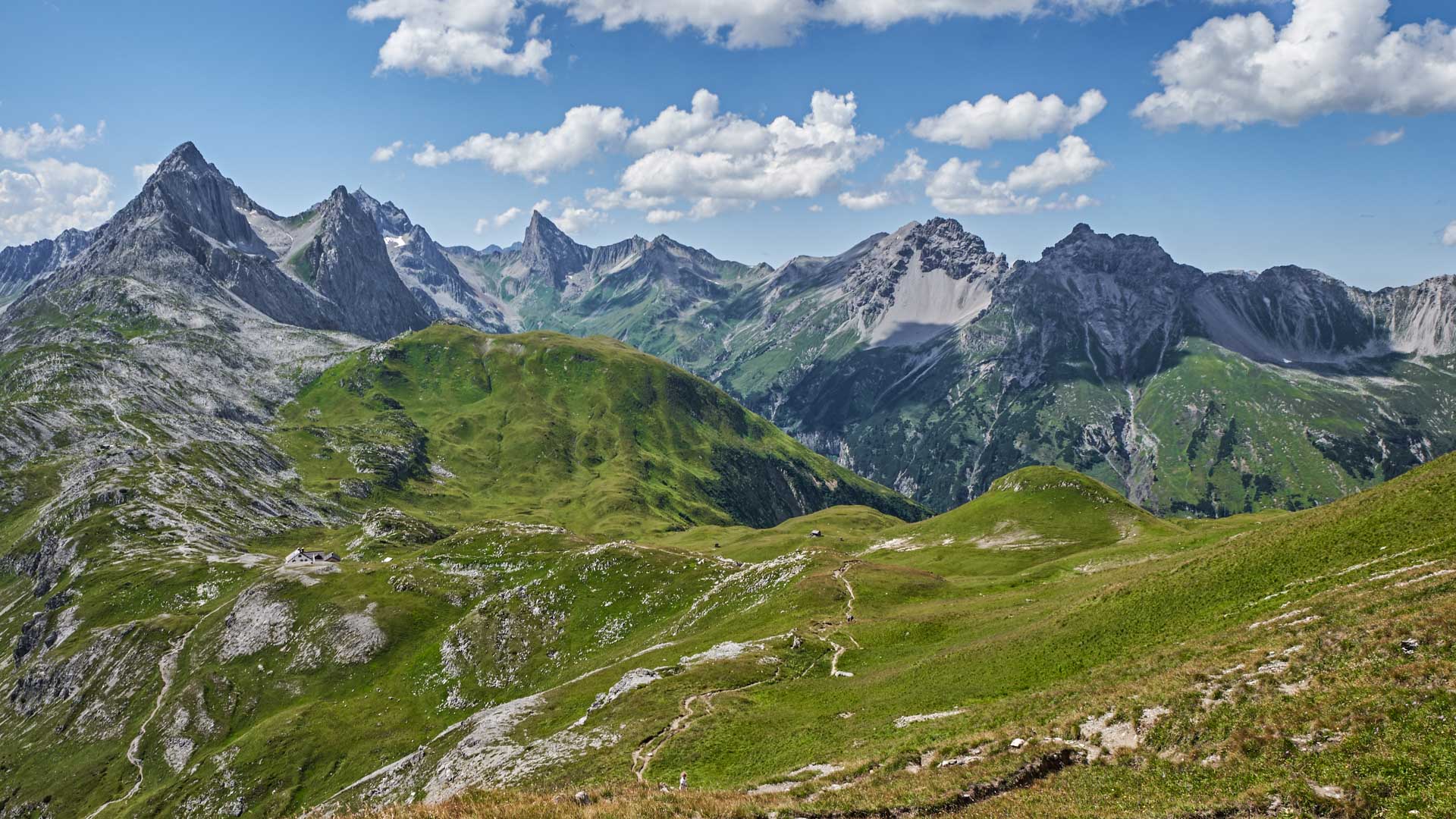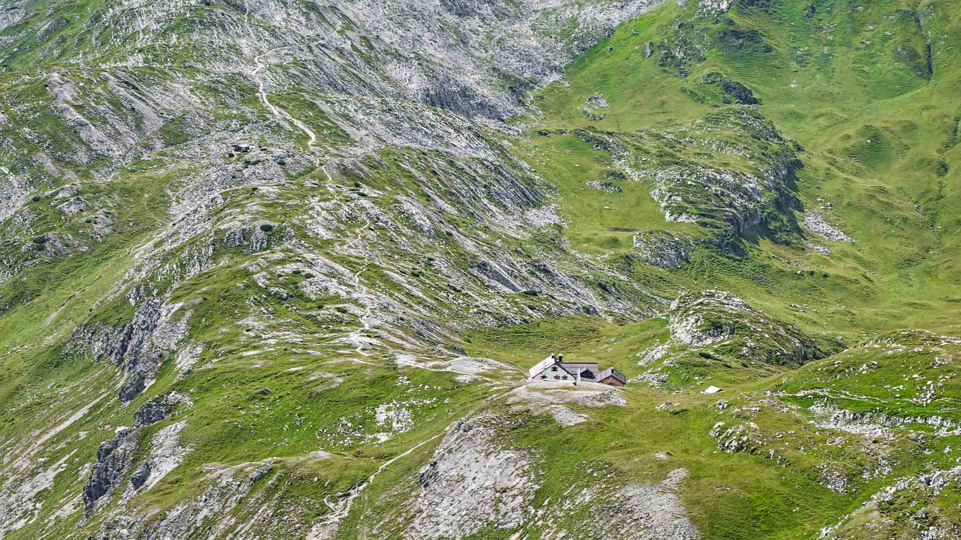 Am nächsten Morgen brechen wir früh auf. Unser Ziel: die Leutkircher Hütte. Der Lechtaler Höhenweg führt uns Richtung der Valluga, dem höchsten Gipfel im Arlberggebiet. Der Weg schlängelt sich vorbei an schrofen Felsgipfeln und saftig grünen Wiesen, über das Valfagehrjoch und weiter über das Almajurjoch. Am Nachmittag erreichen wir die Leutkircher Hütte – ein Ort, der Ruhe und Weitblick vereint.