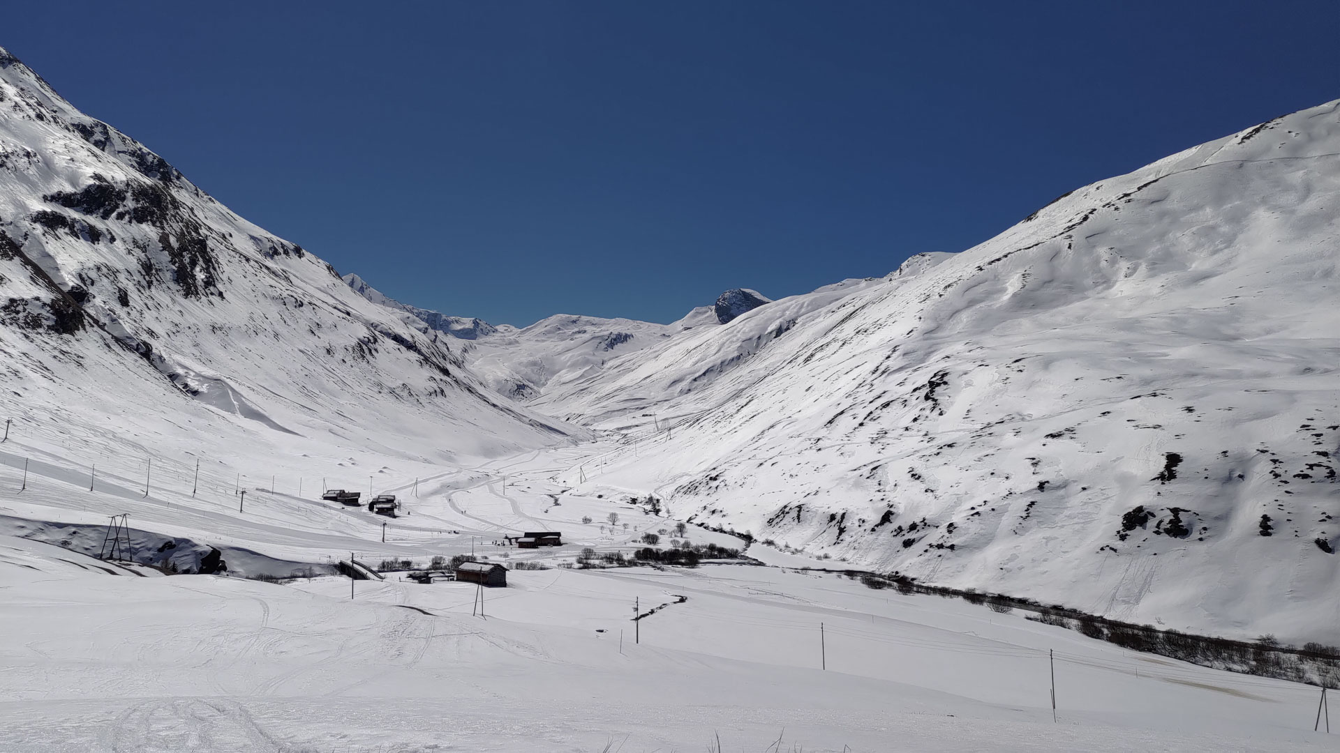 Der Tag beginnt ruhig im oberen Averstal, dessen weite Mulden und sanft modellierte Hänge auf rund 2.000 m ideale Bedingungen für einen sicheren Einstieg in die Wintertour bieten. Nach dem Frühstück folgt eine gründliche Einführung in die Lawinensicherheitsausrüstung: LVS-Gerät, Sonde und Schaufel werden praktisch geübt, die Anwendung im Gelände erklärt und das Verständnis für Schneeaufbau sowie Gefahrenmuster vertieft. Anschließend führt die erste Schneeschuhtour über die breite, sonnenoffene Juferalp, deren gestaffelte Terrassen einen gleichmäßigen Anstieg erlauben. Die Route zieht durch offenes Gelände, begleitet von den umliegenden Gipfeln des Piz Piot (3.053 m) und des Hochberghorns (2.653 m), die das Hochtal eindrucksvoll einrahmen. In den höher gelegenen Abschnitten öffnet sich der Blick über die gestaffelten Seitentäler, während die Spur in leicht kupiertes Gelände wechselt. Nach einer kurzen Rast in der winterlichen Stille des Hochtals führt der Rückweg über die Aufstiegsroute hinab ins Tal, wo der Tag in der klaren Nachmittagssonne ausklingt.
