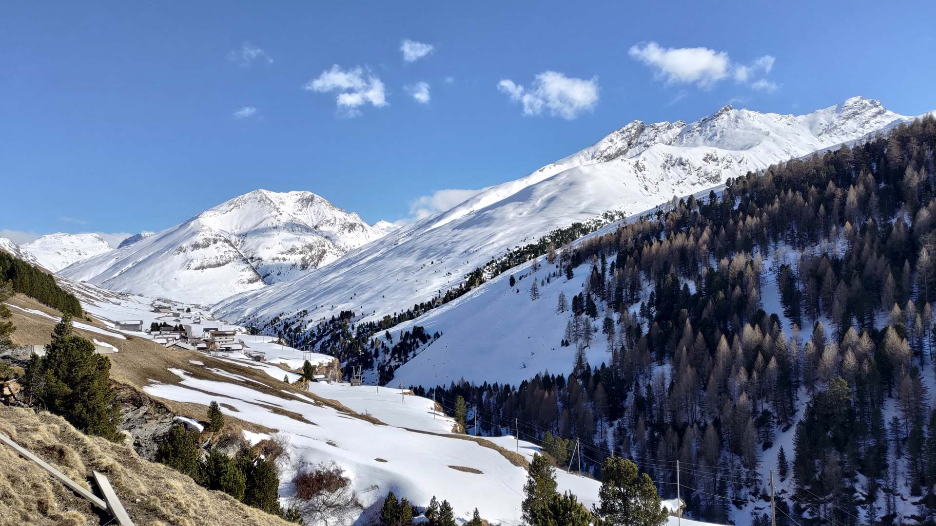 Das Averstal zeigt sich im Winter als ruhiges, abgeschiedenes Hochtal, das mit weiten Schneeflächen, lichten Lärchenhängen und klarer Bergluft eine besondere Stimmung erzeugt. Zwischen den kleinen Walserdörfern Cresta, Juppa und Juf führen die Touren durch sanft kupiertes Gelände, das sich ideal für entspanntes Winterwandern und Schneeschuhlaufen eignet. Offene Mulden, aussichtsreiche Rücken und breite Hänge bieten immer wieder stille Plätze, an denen sich die Weite des Tals besonders gut erleben lässt.