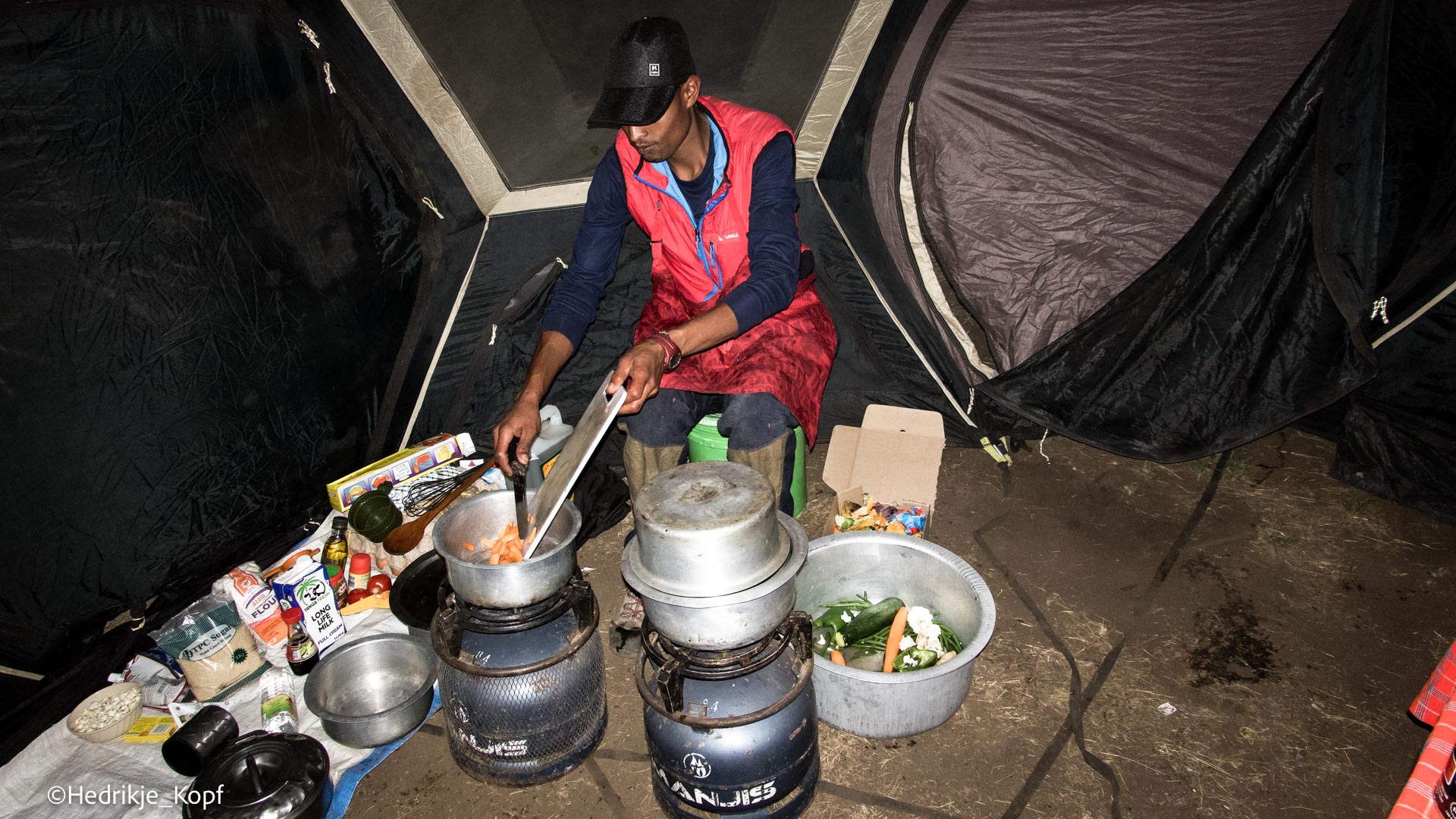 Das Abendessen wird im jeweiligen Camp eingenommen. Hier serviert unser Koch ein vollwertiges, einfaches, aber nahrhaftes 3-Gänge-Menü.