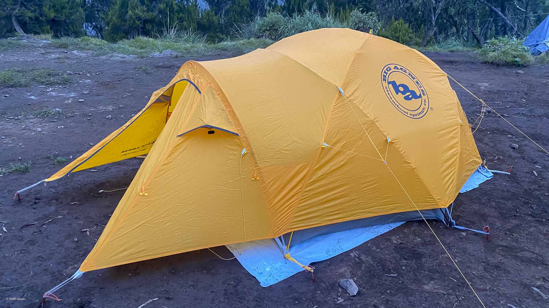 Während unserer Mount Kenia Besteigung erfolgt die Übernachtung in guten Zelten der Marken Mountain Hardwear, MSR o.ä. Dabei übernachten Einzelreisende in 2-Personen-Zelten und Reisende, die sich ein Zelt mit einem anderen Teilnehmer teilen, in Zelten, die für 3 oder sogar 4 Personen konzipiert sind, und genügend Platz bieten.